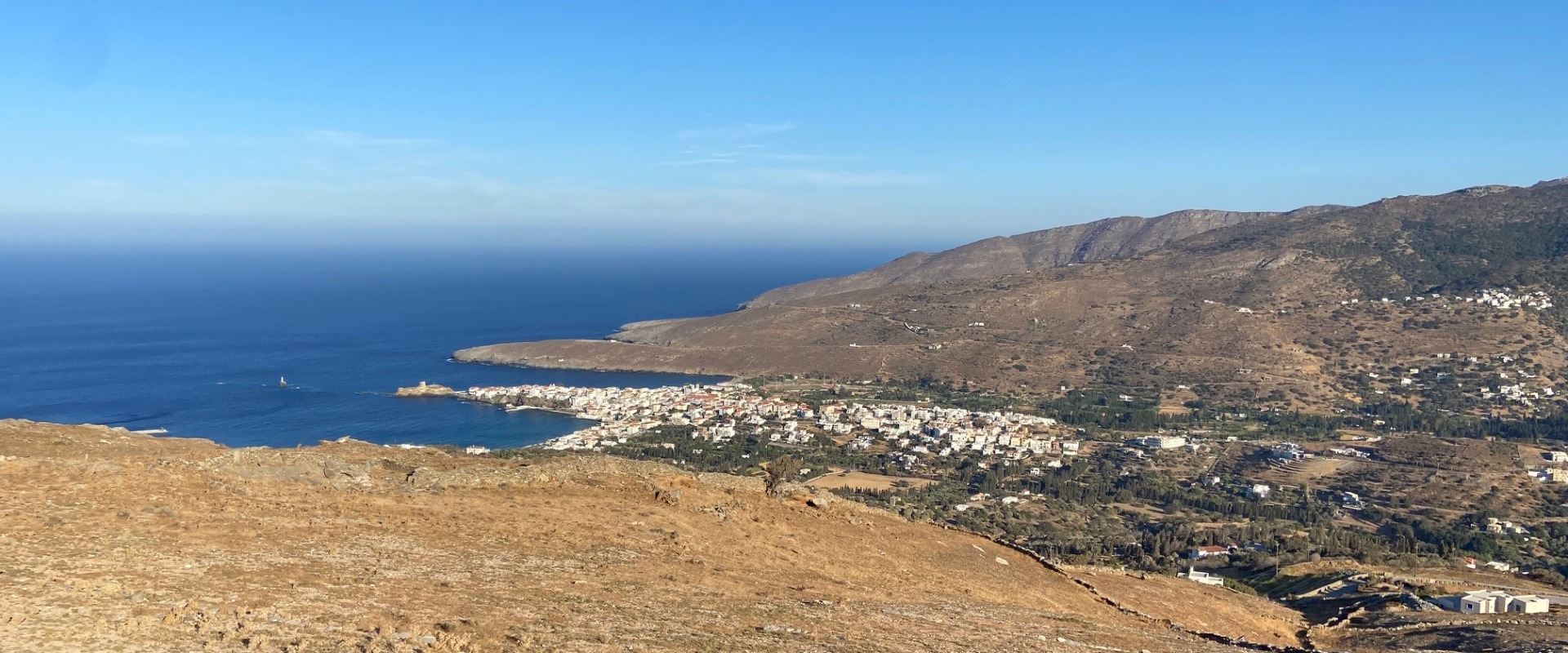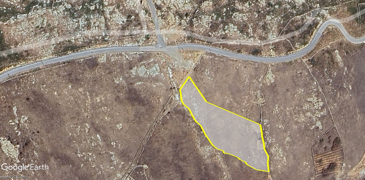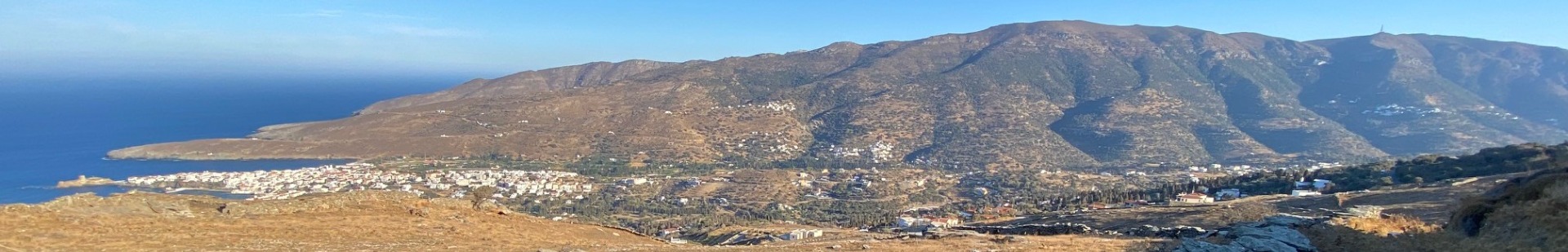 Περιοχή Αγίας Μαρίνας Στραπουργιών, αμφιθεατρικό οικόπεδο εμβαδού 6400 τμ με άδεια οικοδομής για ανέργεση ισόγειας κατοικίας εμβαδού 174 τμ, διαθέτει πρόσοψη σε νόμιμος υφιστάμενο δρόμο μήκους 35,00 μέτρων, προσανατολισμός Νότιο-Ανατολικός, απεριόριστη θέα θάλασσα και την Χώρα της Άνδρου.